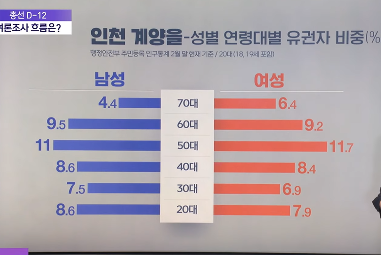 인천 계양을. 민주당 이재명 46. 국민의힘 원희룡 42 (갤럽)