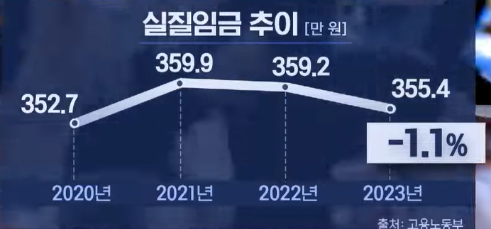 (코로나 이후, 2022년, 2023년 실질임금의 마이너스 성장율 기록)