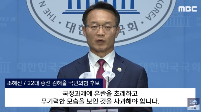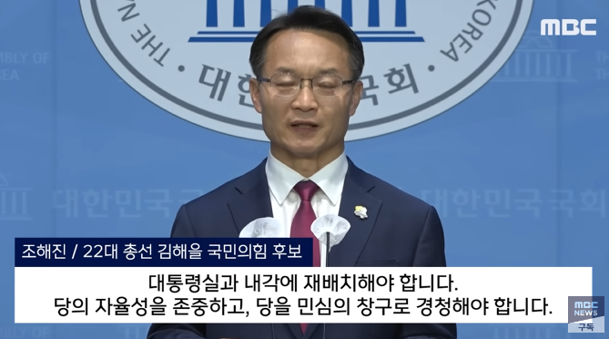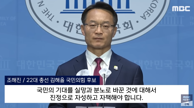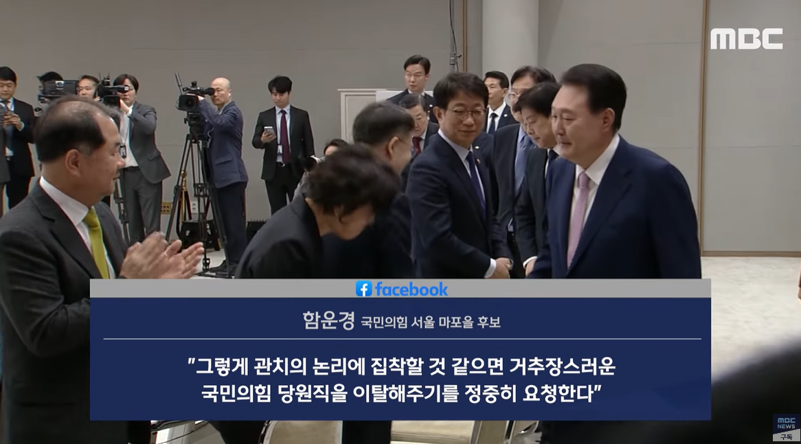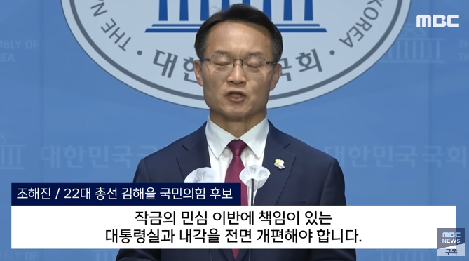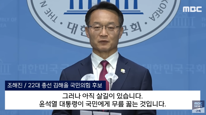 410 총선, 윤석열과 국힘 패배 조짐. 함운경 국힘 후보 '윤석열 탈당하라', 조해진 후보 '윤석열 국민 앞에 무릎 꿇어라' 국민의힘 자중지란.