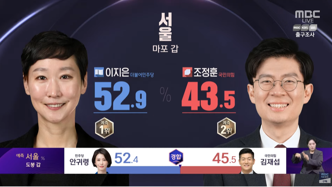 민주당 안귀령 52.4, 국민의힘 김재섭 45.5