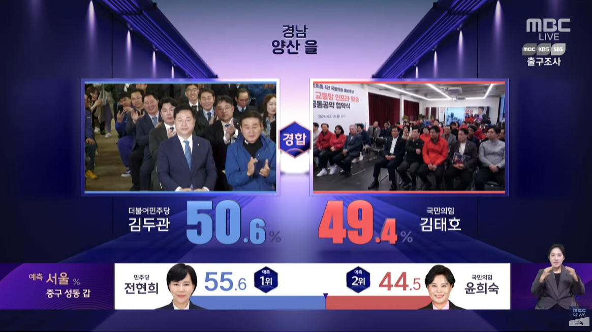 진보정당_리더십/2024년 총선 410 총선 출구조사 오류. 경남 양산을.출구조사. 민주당 김두관 50.6%, 국민의힘 49.4% (실제 결과. 국힘 김태호 51.06%, 민주당 김두관 48.94%) by 원시 2024. 4. 11. 410 총선 출구조사 오류. 경남 양산을 출구조사. 민주당 김두관 50.6%, 국민의힘 49.4% 실제 결과. 국힘 김태호 51.06%, 민주당 김두관 48.94% 공유하기 게시글 관리 한국정치 노트 Notes on the Politics of Korea 저작자표시 비영리 변경금지 (새창열림) '진보정당_리더십 > 2024년 총선' 카테고리의 다른 글 410 총선, 부산 18개 지역구 총선 결과. 민주 1, 국힘 17 당선. 국힘 18명 후보 103만 5233표, 민주 18명 후보 86만 5283표로, 전체 16만 9950표 차이. 민주 45% 대 국힘 54% 비율. 1선거구 당 9441표 차이. (0) 2024.04.11 410 총선 결과. 부산시 수영구 국민의힘 정연욱 50.33%, 민주당 유동철 40.47%, 무소속 장예찬 9.18% (0) 2024.04.11 410 총선결과, 최대격전지 부산 사하구갑 693표 차이, 국민의힘 이성권 (4만 3909표) 50.39%, 민주당 최인호 (4만 3216표) 49.6% (0) 2024.04.11 410 총선 출구조사 오류. 서울 도봉갑 . mbc 출구조사. 민주당 안귀경 52.4, 국민의힘 김재섭 45.5.....실제 결과 국민의힘 김재섭 49.05, 민주당 안귀령 47.89, (0) 2024.04.11 410 총선. mbc 출구조사 오류 - 서울 동작을 국힘 나경원 승리 이유 (0) 2024.04.11 410총선, 22대 총선 mbc 출구조사 오류 - 서울 마포갑 (9.4% 차이로 민주당 이지은 승리 예견 민주당 이지은 52.9, 국민의힘 조정훈 43.5) 실제 결과. 국민의힘이 599표차로 승리. (0) 2024.04.11 410 총선 결과. 서울 용산구. 국민의힘 권영세. 51.77% (6만 6583표)민주당 강태웅 (47.02%) 6만 473표. (0) 2024.04.11 관련글 410 총선 결과. 부산시 수영구 국민의힘 정연욱 50.33%, 민주당 유동철 40.47%, 무소속 장예찬 9.18% 410 총선결과, 최대격전지 부산 사하구갑 693표 차이, 국민의힘 이성권 (4만 3909표) 50.39%, 민주당 최인호 (4만 3216표) 49.6% 410 총선 출구조사 오류. 서울 도봉갑 . mbc 출구조사. 민주당 안귀경 52.4, 국민의힘 김재섭 45.5.....실제 결과 국민의힘 김재섭 49.05, 민주당 안귀령 47.89, 410 총선. mbc 출구조사 오류 - 서울 동작을 국힘 나경원 승리 이유