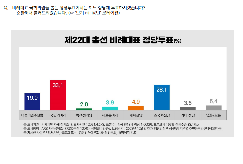 4월 10일 총선 전 리서치뷰의 여론조사가 윤석열 정권 참패 이유를 가장 잘 설명해주고 있다.