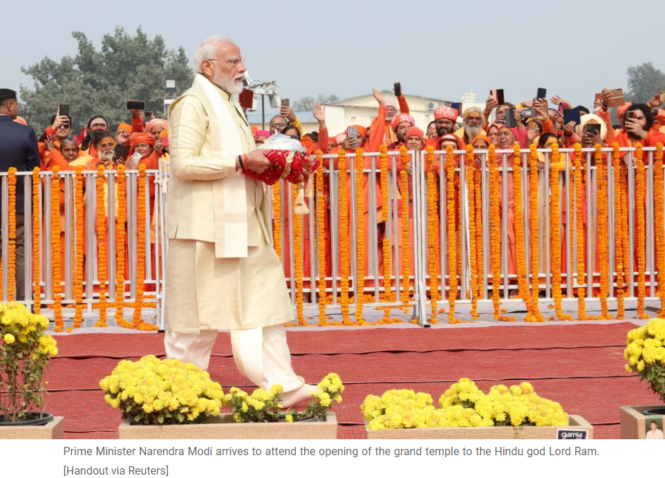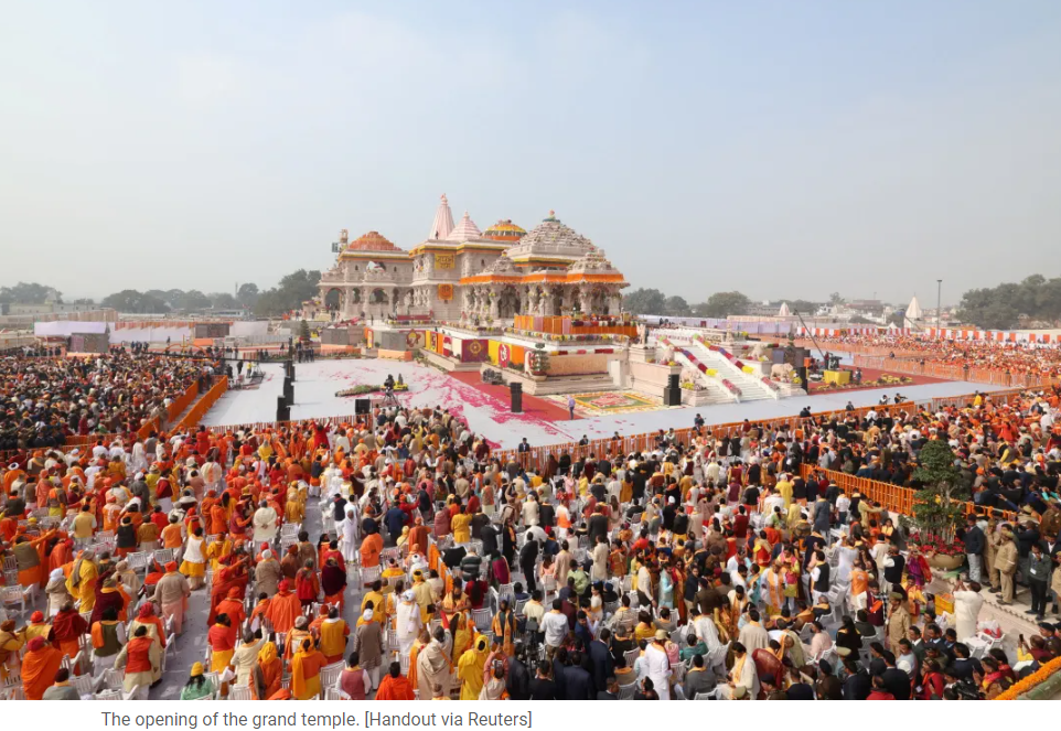 (2024년 1월 22일 알자지라 보도. 아요댜 대규모 힌두교 사원 개원)