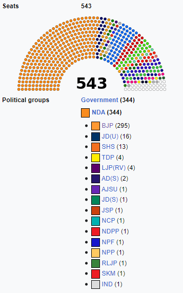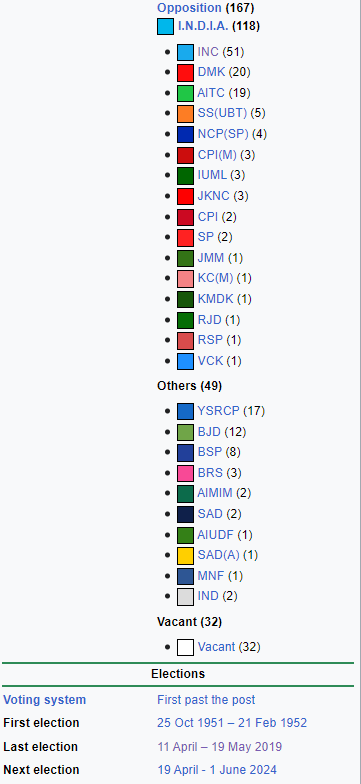 2) 인디아 총선 제도. 인디아 의회 구성. 543석 하원. 를 ‘록 삽하 Lok Sabha’라고 부름. 상원은 라즈야 삽하(Rajya Sabha)