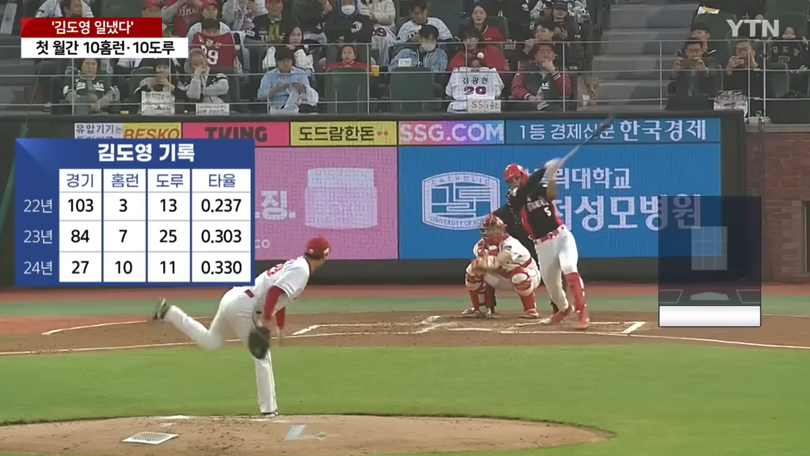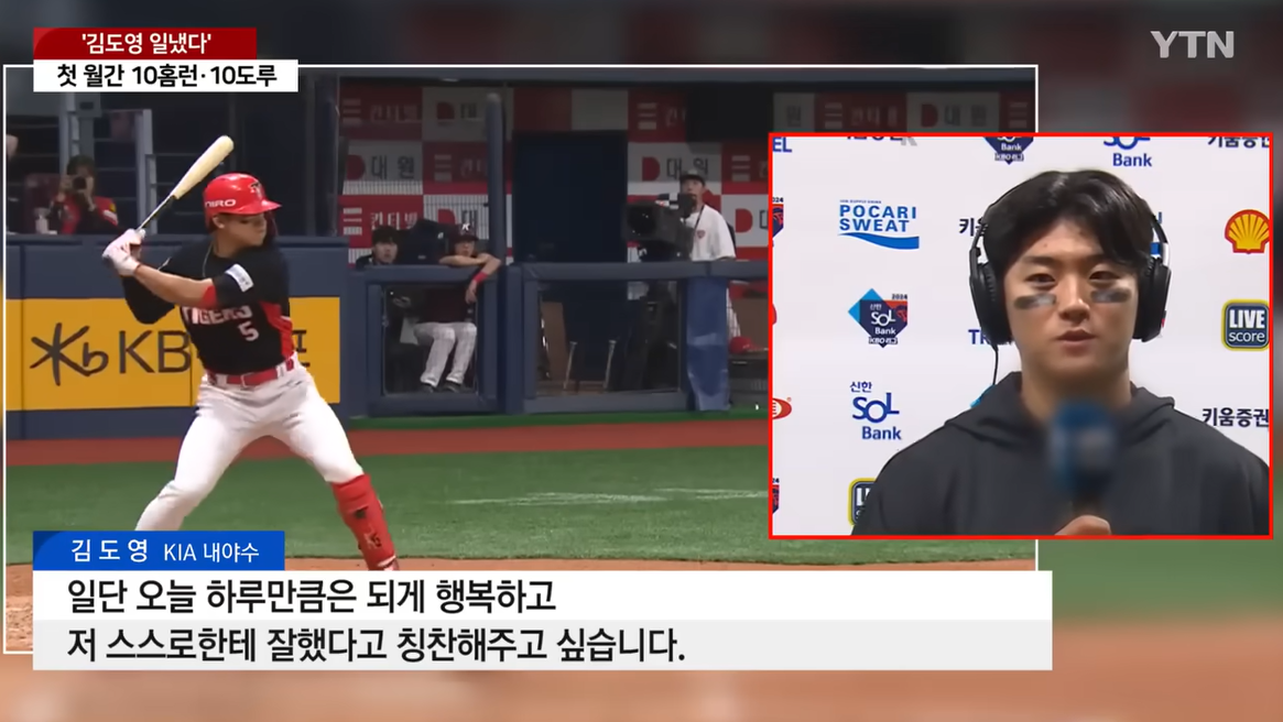 2024년 27게임만에 김도영이 10홈런-10도루를 기록, 한국 프로야구 사상 최초, 월간 10홈런-10도루 달성.