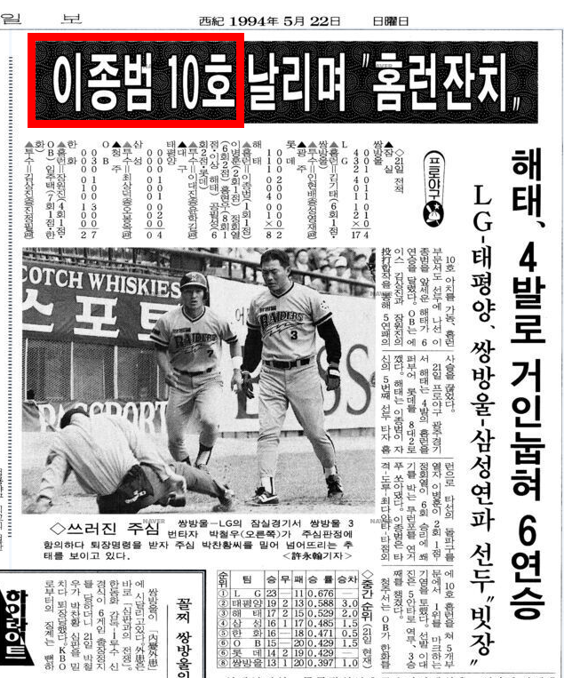 1994년, 5월 21일. 34게임만에 이종범 10호 홈런.