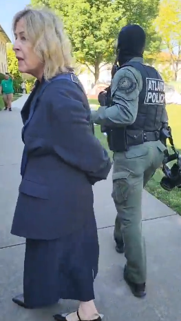 에모리 대학 철학과 학과장인 노엘 맥카피가 4월 25일 목요일 시위 현장에서 체포되었다.