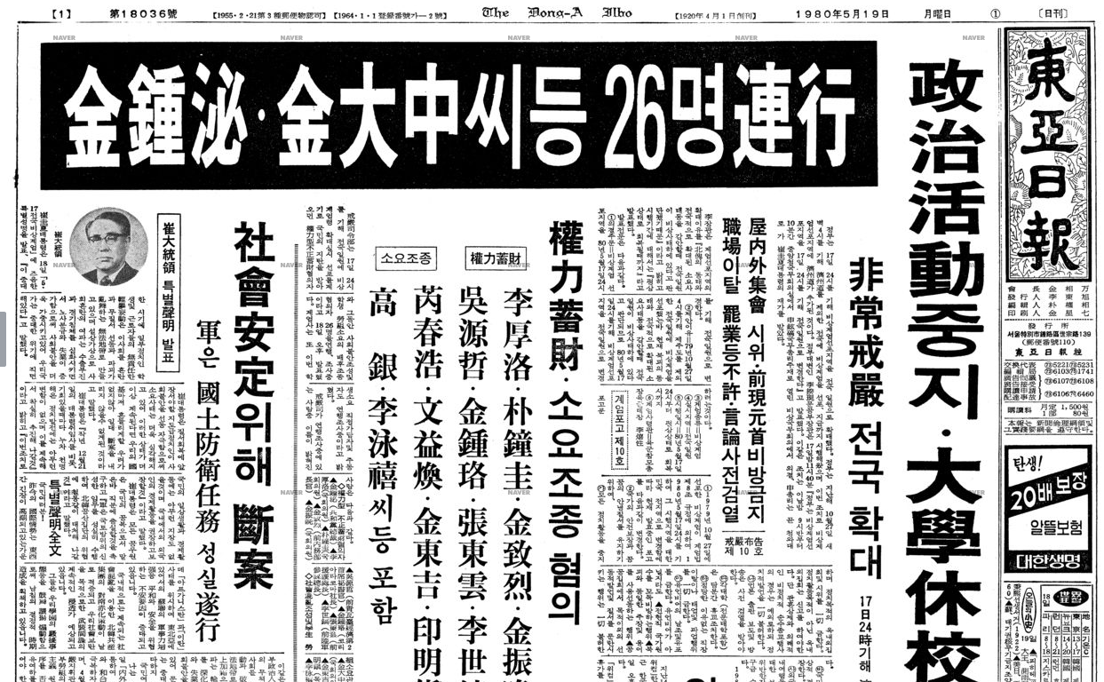 | 518광주항쟁 당시 언론보도. 5월 20일 - 광주 뉴스 없어. 동아 1면, 김재규 사형 확정. (0) | 2024.05.22 |