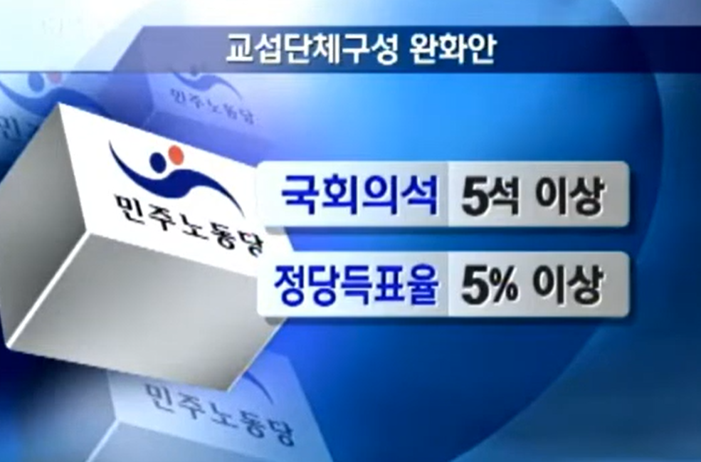 "두 정당 (민주당과 한나라당)이 운영권을 독점하게 된다. 다양한 목소리를 가진 다른 정당들은 배제된다." 민주노동당 초창기에는 이러한 정치개혁을 외치는 기백이 있었다.