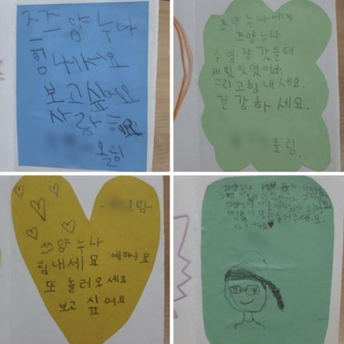 2020년 8월 유튜버 '쯔양'이 뒷광고 논란을 겪을 때 서울 관악구 상록보육원 아이들이 보낸 편지. 상록보육원 제공