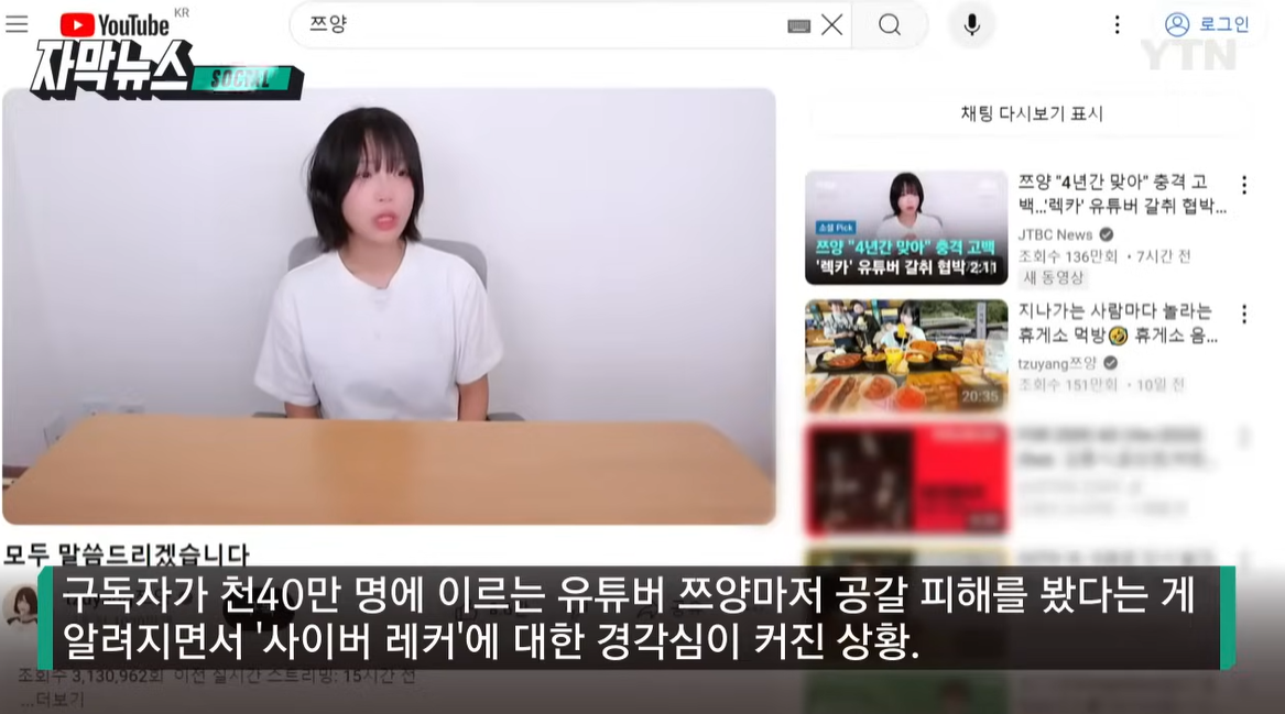 구독자가 천40만 명에 이르는 유튜버 쯔양마저 공갈 피해를 봤다는 게 알려지면서 '사이버 레커'에 대한 경각심이 커진 상황.