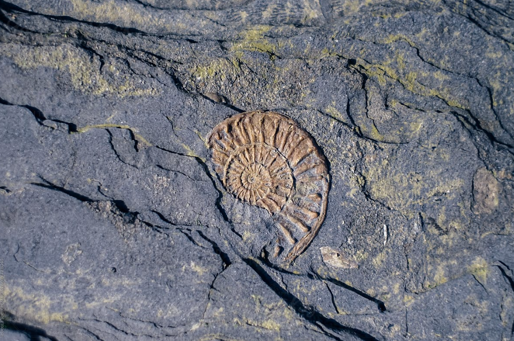 Ammonite fossil embedded in stone