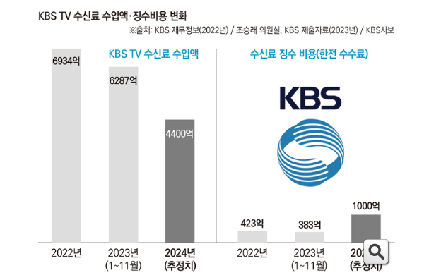 한국방송은 올해 1월 확정한 ‘2024년도 종합예산안’에서 연간 1431억원의 적자를 전망했다. 경영진이 거론한 적자의 가장 큰 이유는 수신료 수입 감소다.