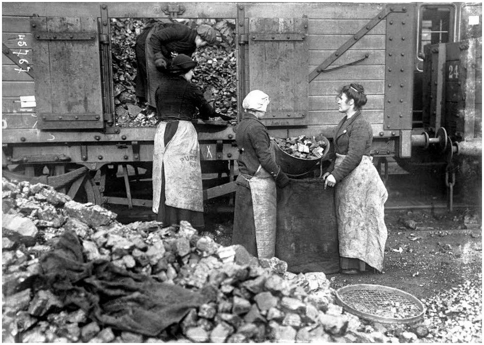 Women unloading a coal wagon in England - early 1900s