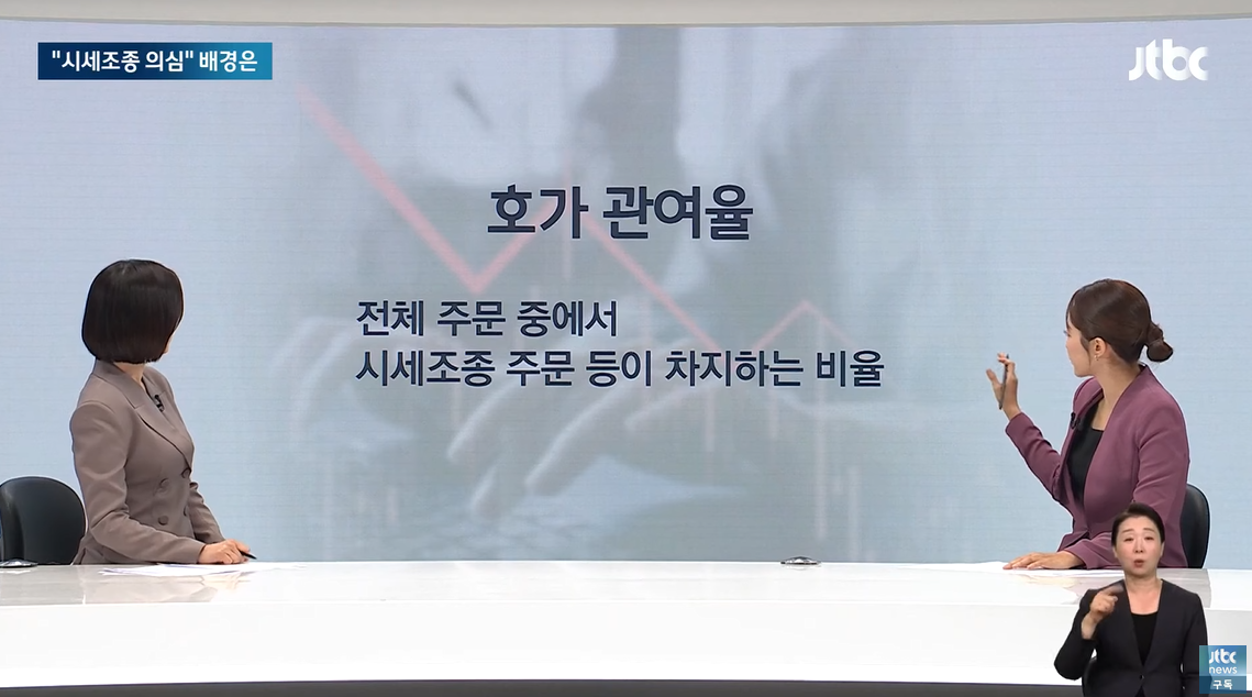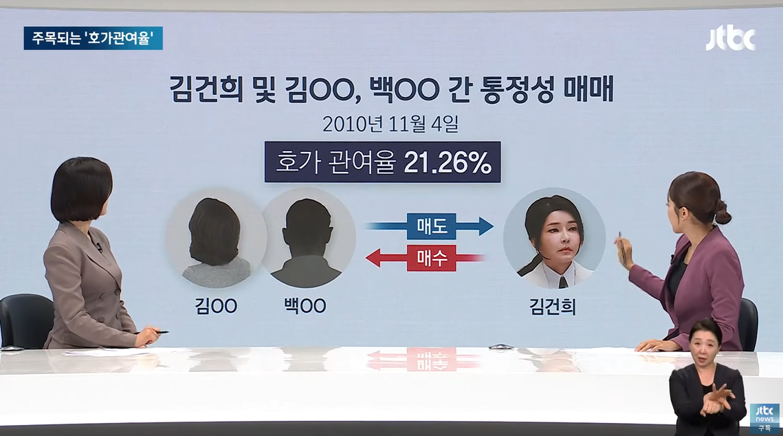 다음 날 김모 씨와 백모 씨가 판 주식을 김 여사가 사는 과정에서 호가관여율은 21.26%입니다.