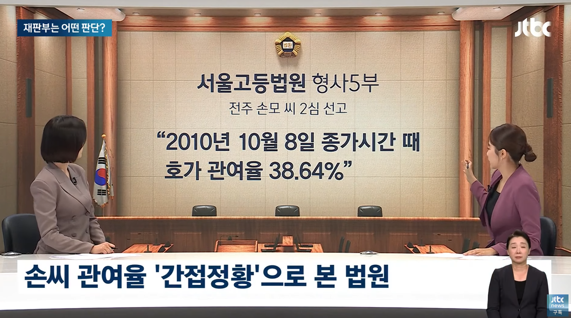 네, 맞습니다. 당시 손씨 거래를 두고 종가기준 호가관여율일 38.64%라고 판결문에 적었습니다.