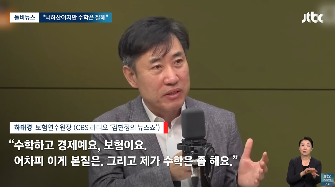 [하태경/보험연수원장 (CBS 라디오 '김현정의 뉴스쇼') : 저보고 이제 낙하산이라고 자꾸 비판하시는데 뭐 그게 일부 맞는데, 이제 제가…수학하고 경제예요, 보험이요. 어차피 이게 본질은. 그리고 제가 수학은 좀 해요.]