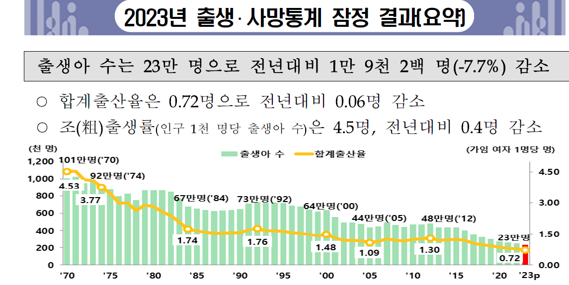 2023년 출생·사망통계(잠정) (요약)