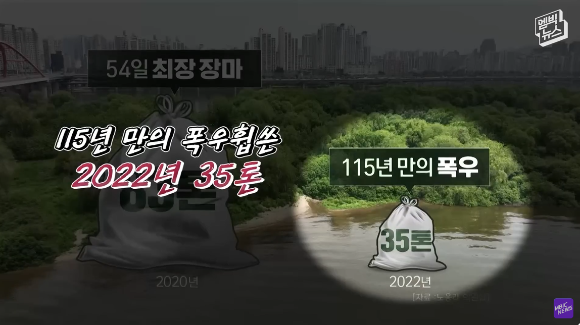 2022년 서울 밤섬에 떠내려온 쓰레기 양, 35톤