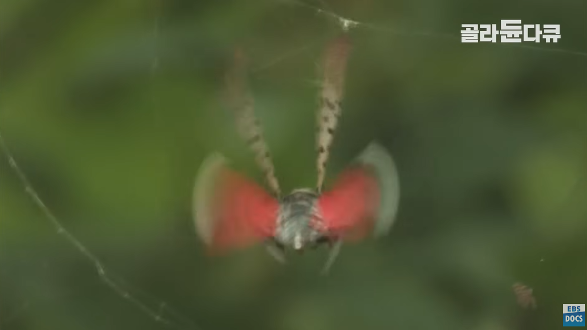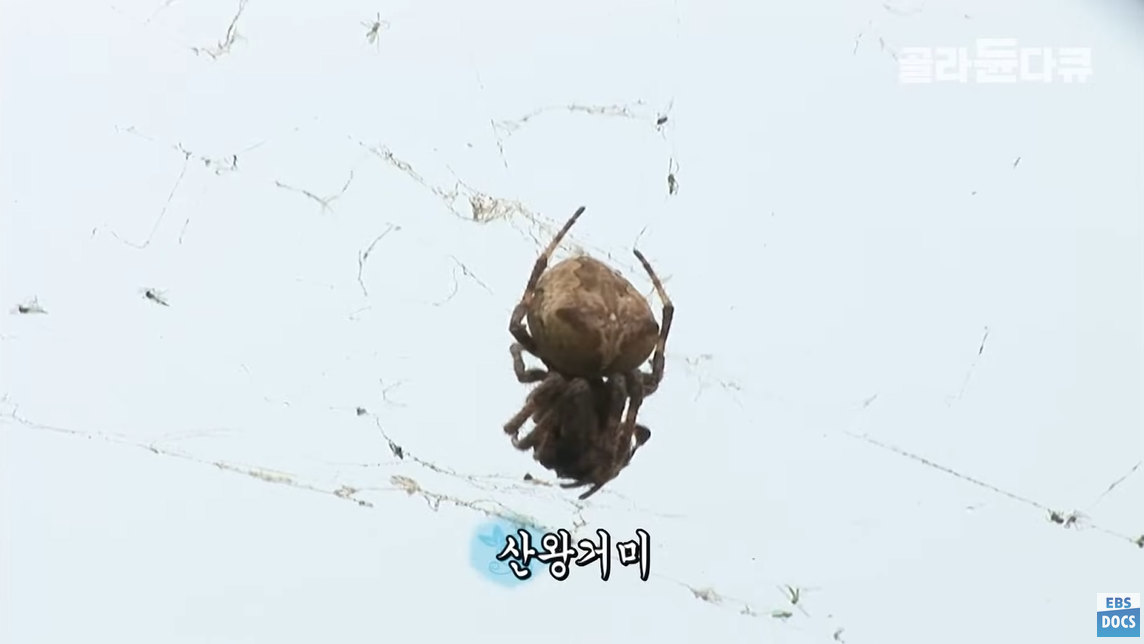 꽃매미를 잡아먹는 산왕거미.