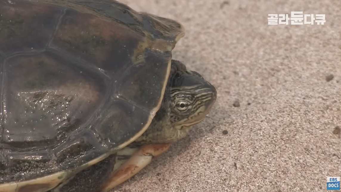 밤섬 모래톱에 알을 낳는 붉은귀 거북