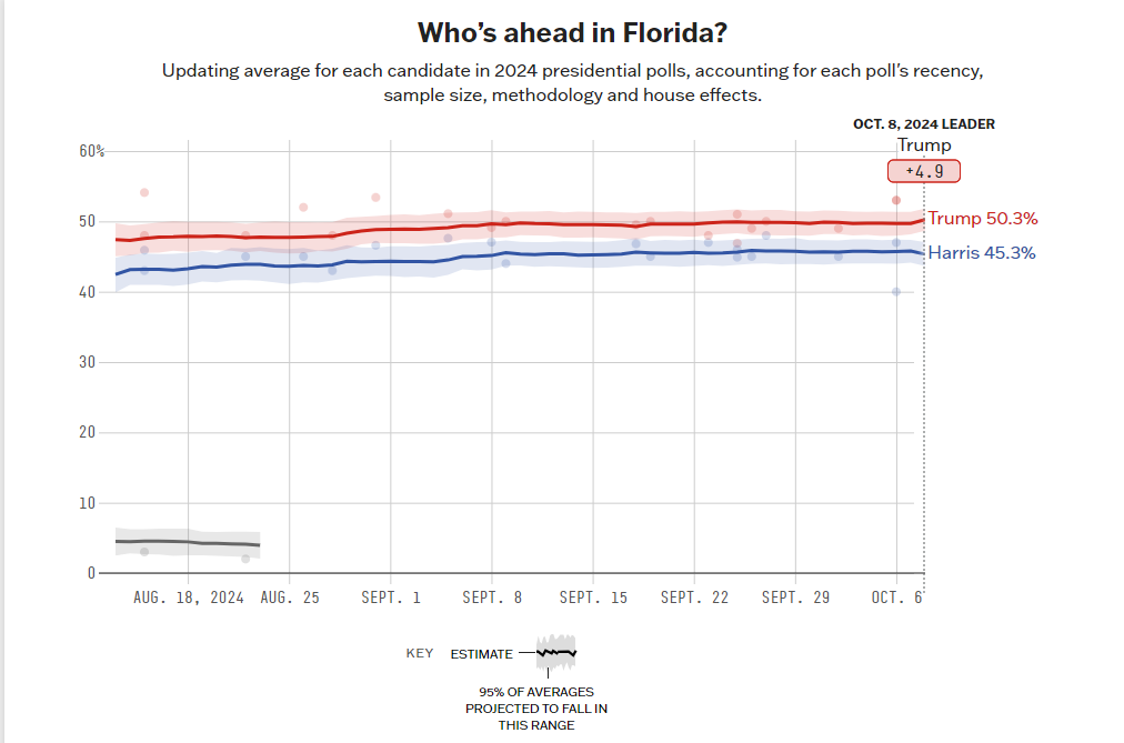 플로리다. 트럼프 50.3%, 해리스 45.3%