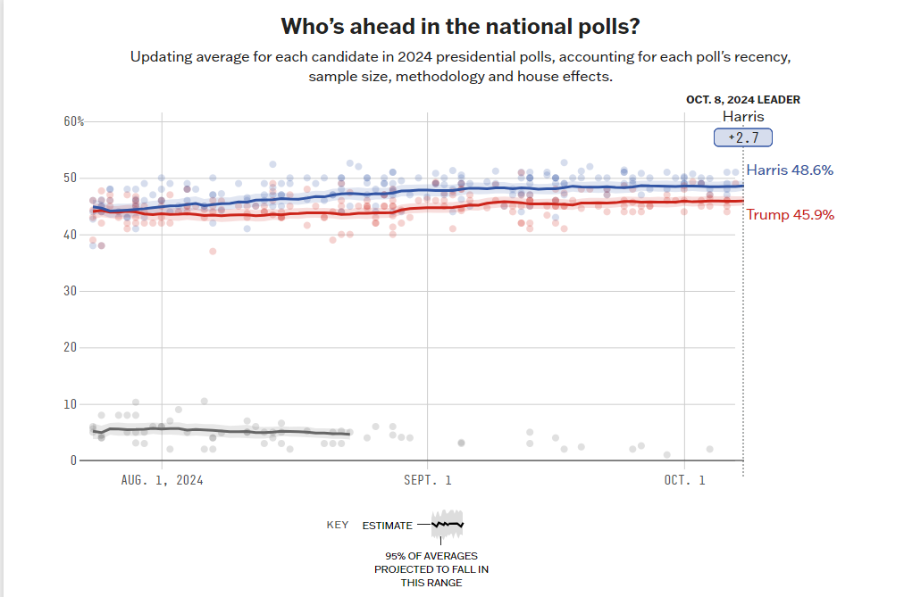 10월 8일. 전국 여론조사. 해리스 48.6%, 트럼프 45.9%