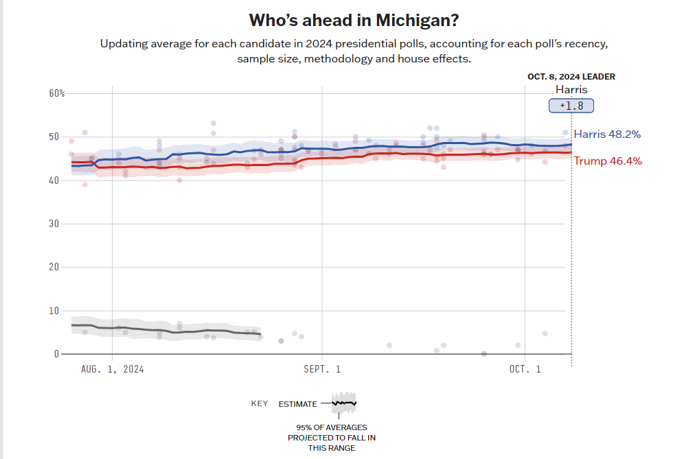 미시건 - 해리스 48.2%, 트럼프 46.4%
