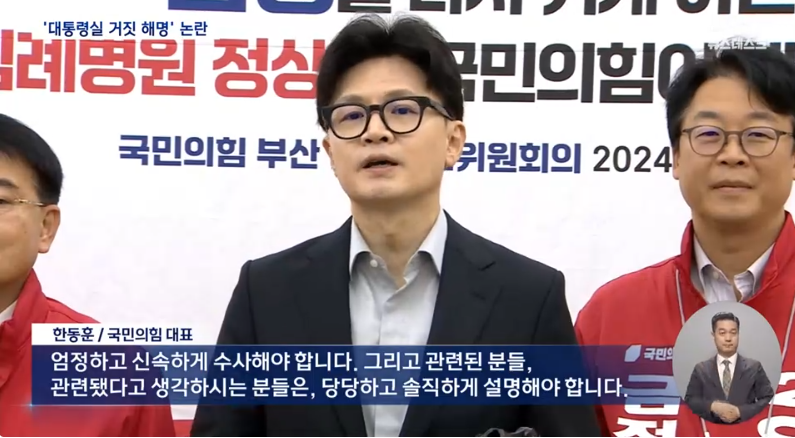 한동훈 대표는 명 씨 의혹이 커지는 것을 두고 "이런 구태정치를 극복하는 것이 국민을 위한 정치의 출발"이라고 비판했습니다.