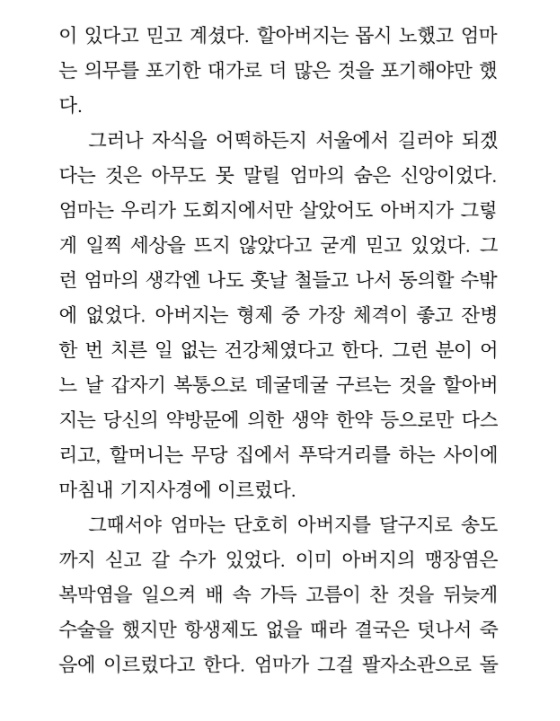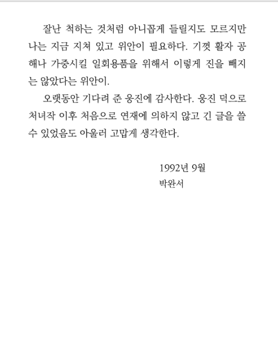 박완서가 아이들을 낳고 돌보다가 만 39세 나이로 소설가로 데뷔했다. 인간적으로 존경하는 대목이다.