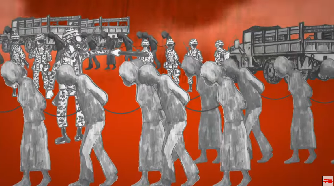 Confront 가 ‘적군’과 맞서 싸운다는 맥락이 아니고, 작가 한강이 ‘역사적 상처(트라우마)’를 직시하고, 마주대하다, 이런 뜻임.