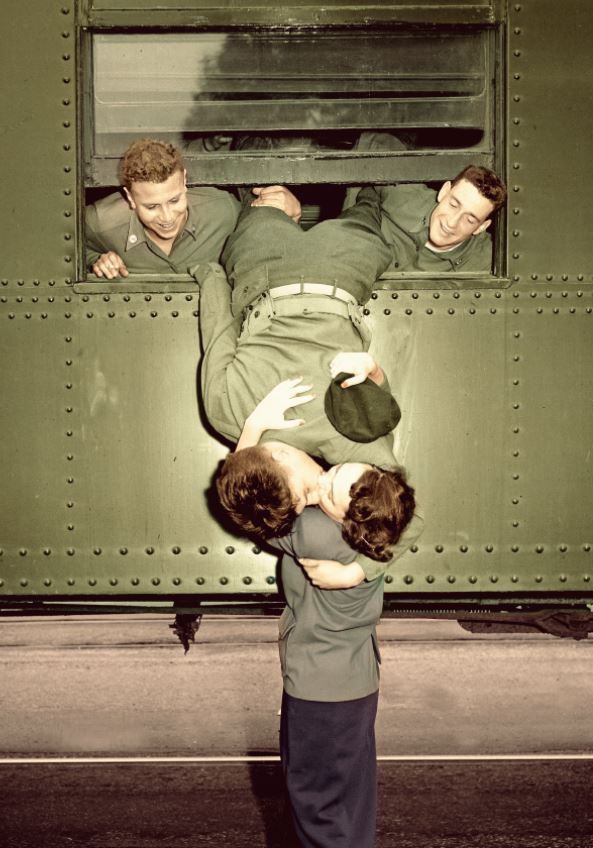This photograph right here is of one of America’s most classic goodbye kisses.