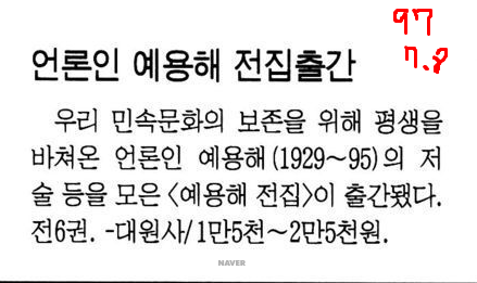1997년 예용해 전집 출간, 6권 (대원사)