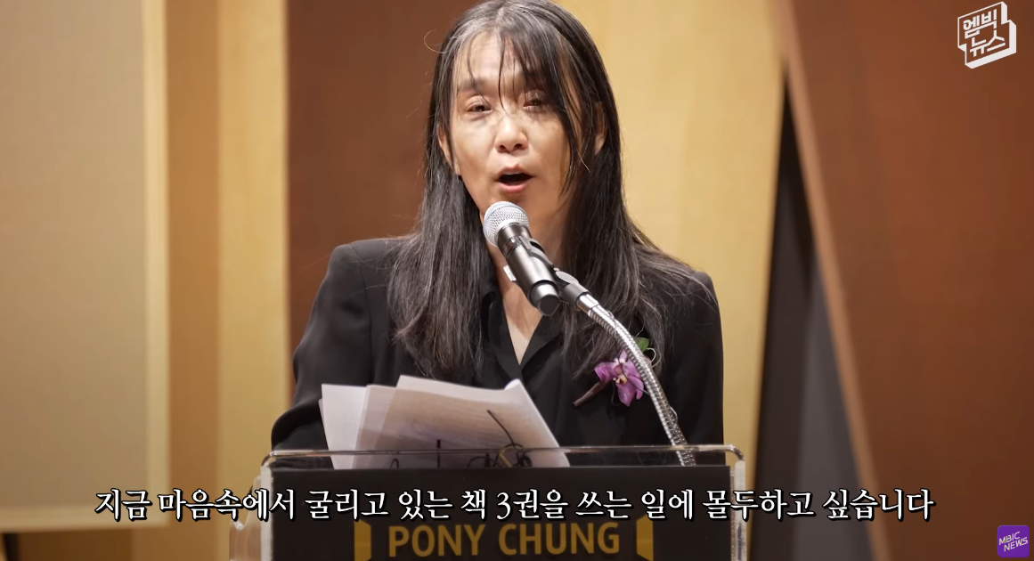 가족과 친구들에게는 다정한 인사를 건넵니다. 저를 수상자로 선정해주신 분들과 포니정재단의 여러분께 깊은 감사를 드립니다.