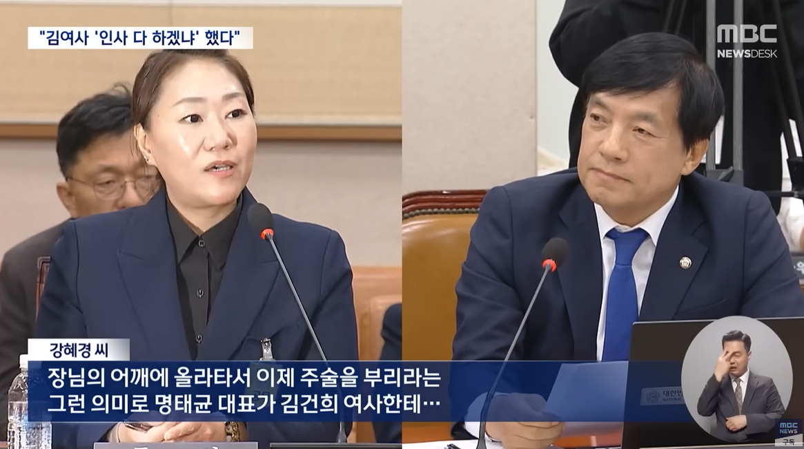국정감사에 나온 강혜경 씨는 "명 씨가 김건희 여사와 영적인 대화를 많이 나눈다고 말했다"고 주장했습니다.