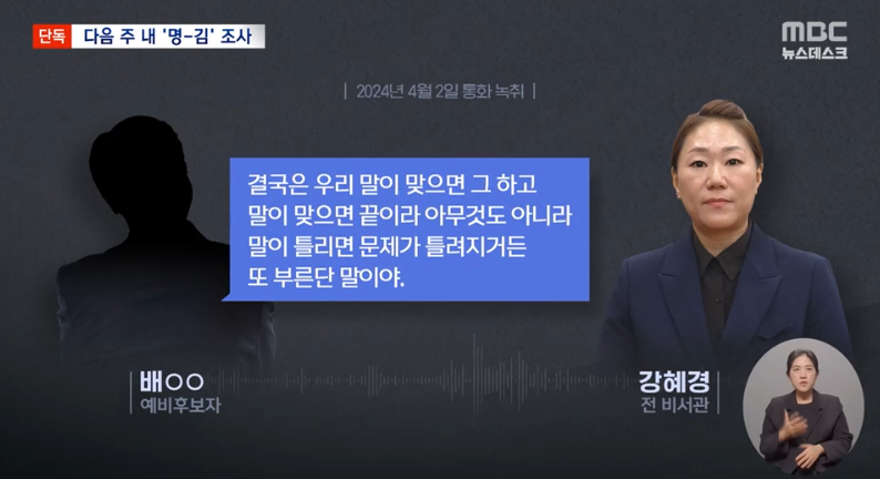 [배OO/예비후보자 - 강혜경/전 비서관(2024년 4월 2일 통화 녹취)]