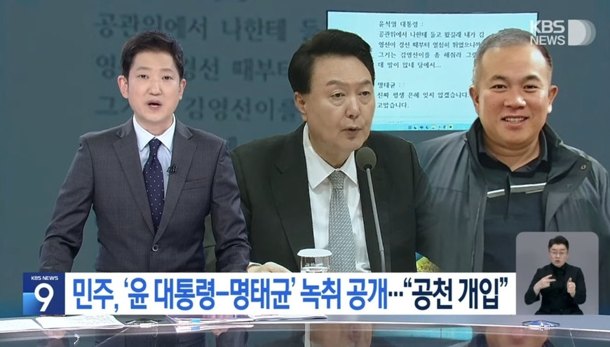1일 오전 KBS 통합뉴스룸 편집회의에서 KBS 기자협회장은 전날 뉴스9의 윤 대통령 녹취 보도와 관련해 “명태균 관련 뉴스는 참사 수준이라고 평가” “타사도 중요한 전환 국면이라고 판단했는데 내용 측면에서 우리는 발생을 그냥 요약만 해서 전한 수준, KBS만의 시선으로 분석하고 재구성한 아이템은 전무” “최고 정치권력인 대통령실의 거짓말은 심각한 사안, 이번 녹취 파동에 대해 전 언론이 심각한 우려 전달” 등 기자들의 비판 의견을 전달한 것으로 알려진다. 지난해 12월부터 KBS 기자협회는 다양한 연차의 기자 여러 명으로 구성된 공정보도TF를 꾸려 매일 ‘뉴스9’를 모니터링한 보고서를 내부망에 게시하고 있다.
