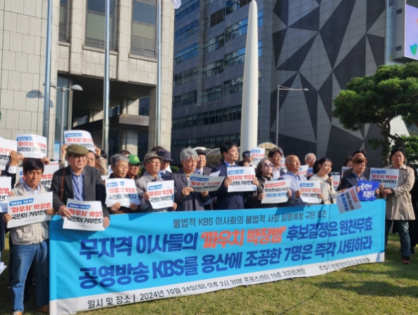 이어 “법원이 2인 체제 방송통신위원회 의결이 위법하다고 판단한 만큼 이진숙-김태규 2인 체제 추천을 받아 임명된 KBS 이사 7명은 차기 사장 후보자를 공모·선출할 자격이 없다. 아울러 공영방송 사장선임 절차로 자리잡은 시민평가 과정을 배제한 것은 국민 목소리를 듣지 않겠다는 점에서 선출과정도 정상적이지 않다”고 지적한 뒤 “KBS를 정권에 헌납한 낙하산 이사 7명은 즉각 사퇴하라. 국회는 국민이 공영방송 KBS의 진정한 주인으로 권한을 행사할 수 있는 제도를 마련하라”고 촉구했다.
