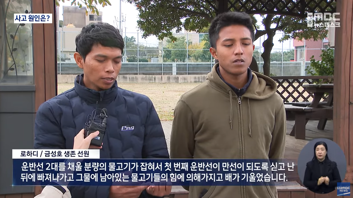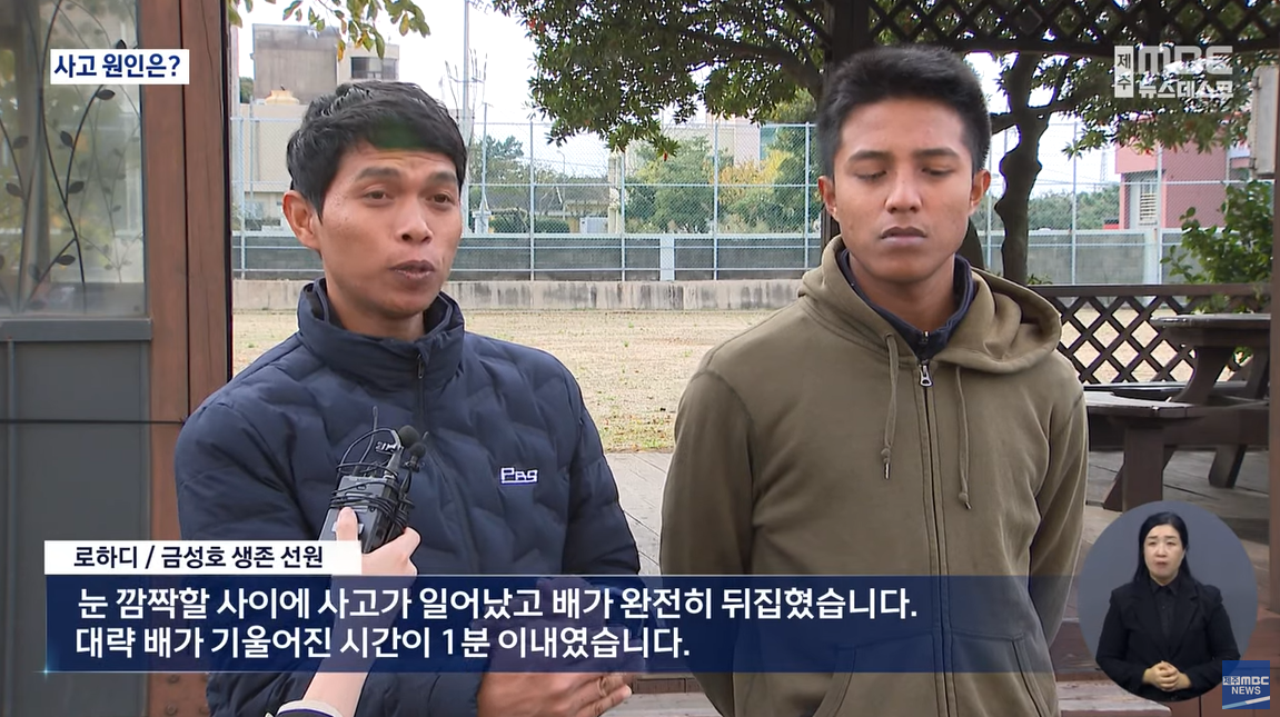 금성호에서 일했던 생존 선원 (로하디) "눈 깜짝할 사이에 사고가 일어났고, 배가 완전히 뒤집혔습니다. 1분 이내 배가 다 기울어졌다"
