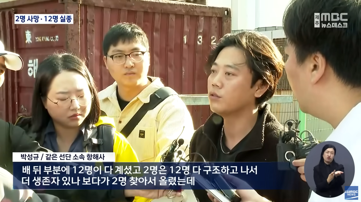 이어 "배 위에 있던 선원들을 모두 구조하고 난 후 추가 생존자가 있을까 해서 해상을 살피던 중 2명을 추가로 구조했다"고 말했다.