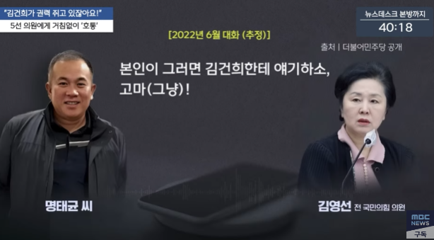 1. 2022년 6월 추정. 명태균이 김영선 전 의원을 전화로 호통친 이유