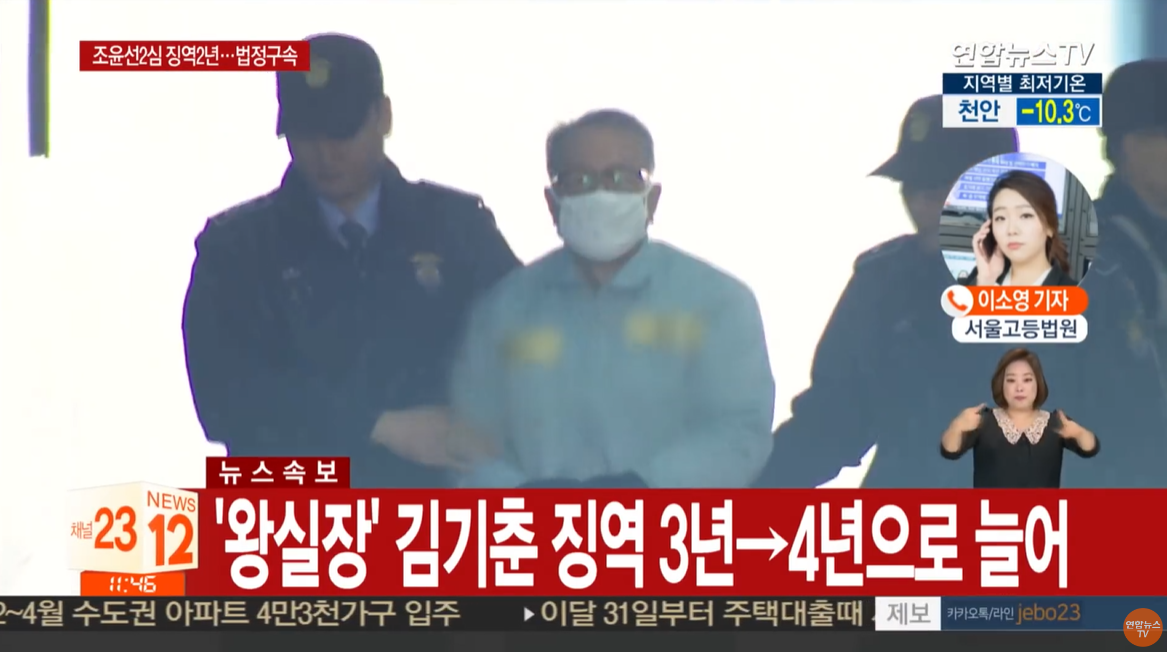 조윤선 6개월 만에 법정구속…김기춘 징역 3년→4년
