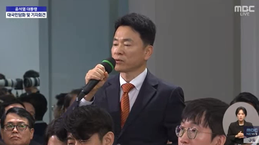 부산일보 박석호 기자, 경향신문 박순봉 기자가, 윤석열에게 '무엇을 사과하는지' 분명히 해달라고 질문했다.