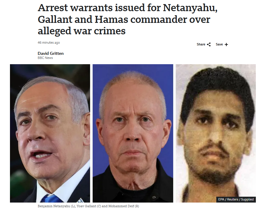 1.국제형사재판소, 국제형사법원 (ICC)이 이스라엘 총리 네탄야후, 전 국방장관 요아브 갤런트, 하마스 국방장관(군수뇌부) 모하메드 데이프를 전범으로 체포영장을 발부했다.