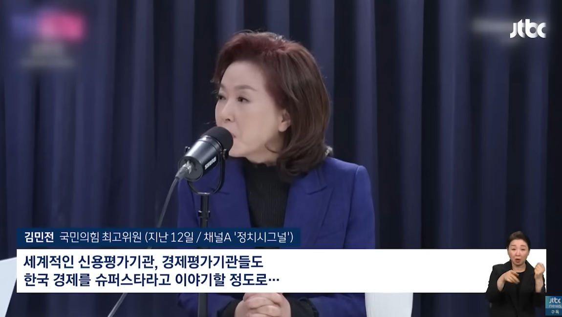 국민의힘 김민전은 한국경제가 '수퍼스타'라고 칭송받는다고 호도함.