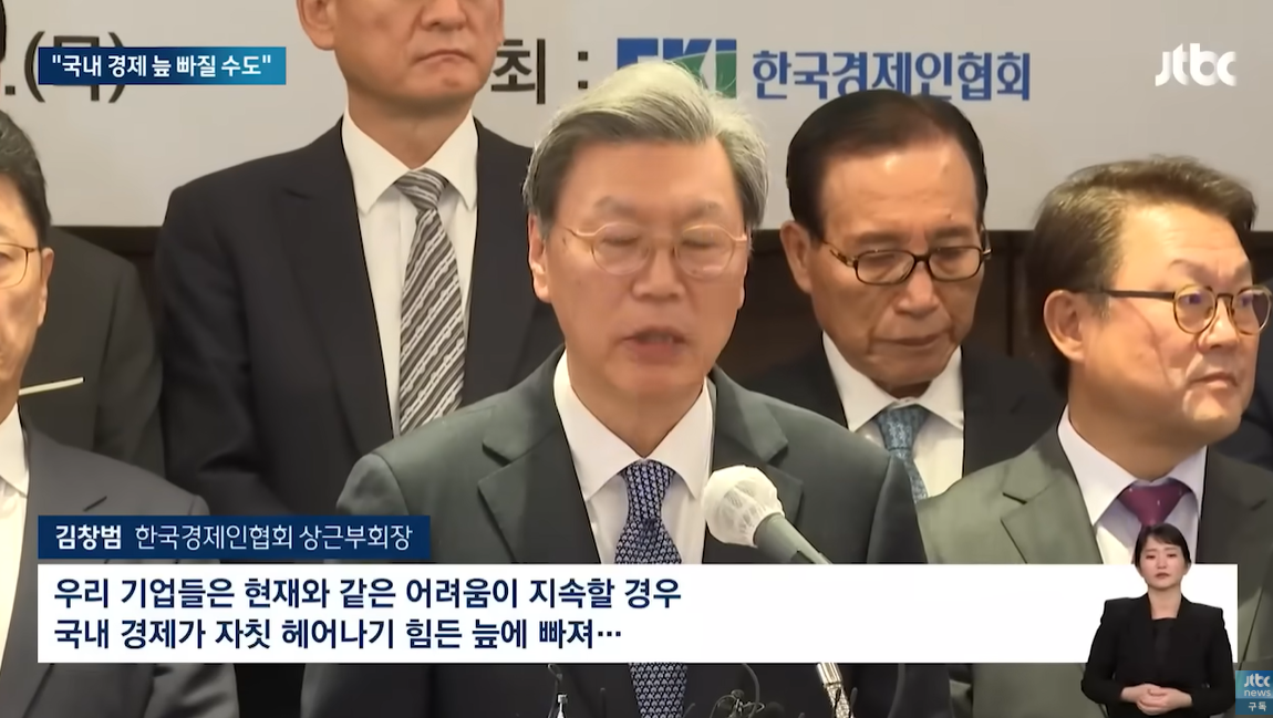 [김창범/한국경제인협회 상근부회장 : 우리 기업들은 현재와 같은 어려움이 지속할 경우 국내 경제가 자칫 헤어나기 힘든 늪에 빠져…]