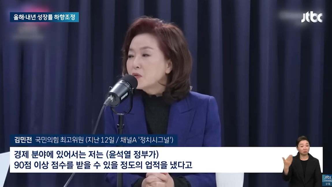 [김민전/국민의힘 최고위원 (지난 12일 / 채널A '정치시그널') : 경제 분야에 있어서는 저는 (윤석열 정부가) 90점 이상 점수를 받을 수 있을 정도의 업적을 냈다고 세계적인 신용평가기관, 경제평가기관들도 한국 경제를 슈퍼스타라고 이야기할 정도로…]
