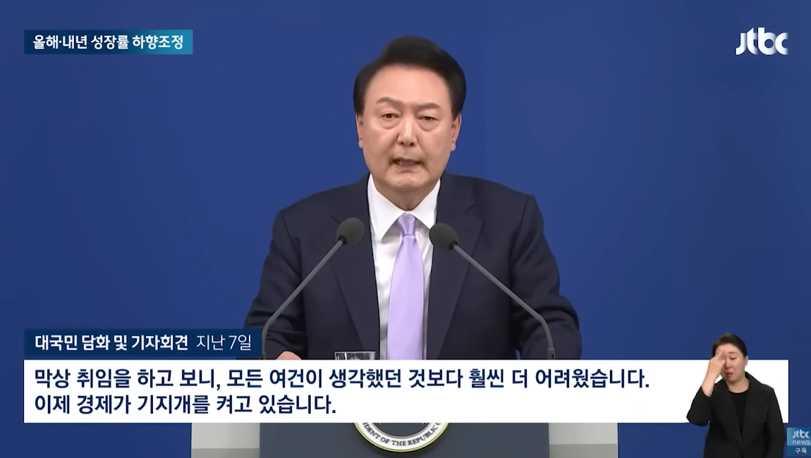 [대국민 담화 및 기자회견 (지난 7일) : 막상 취임을 하고 보니, 모든 여건이 생각했던 것보다 훨씬 더 어려웠습니다. 이제 경제가 기지개를 켜고 있습니다.]