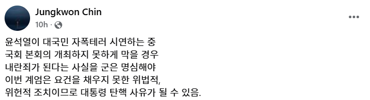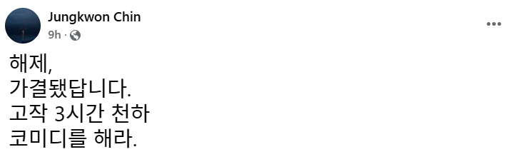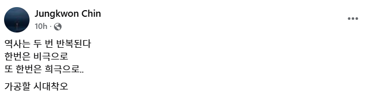 윤석열의 비상계엄 선포를, 한번은 비극으로 다른 한번은 코메디로 끝났다고 말한다고 해서, 윤석열 코치질을 해온 진중권의 지난 5년간의 과오가 씻어지는가?