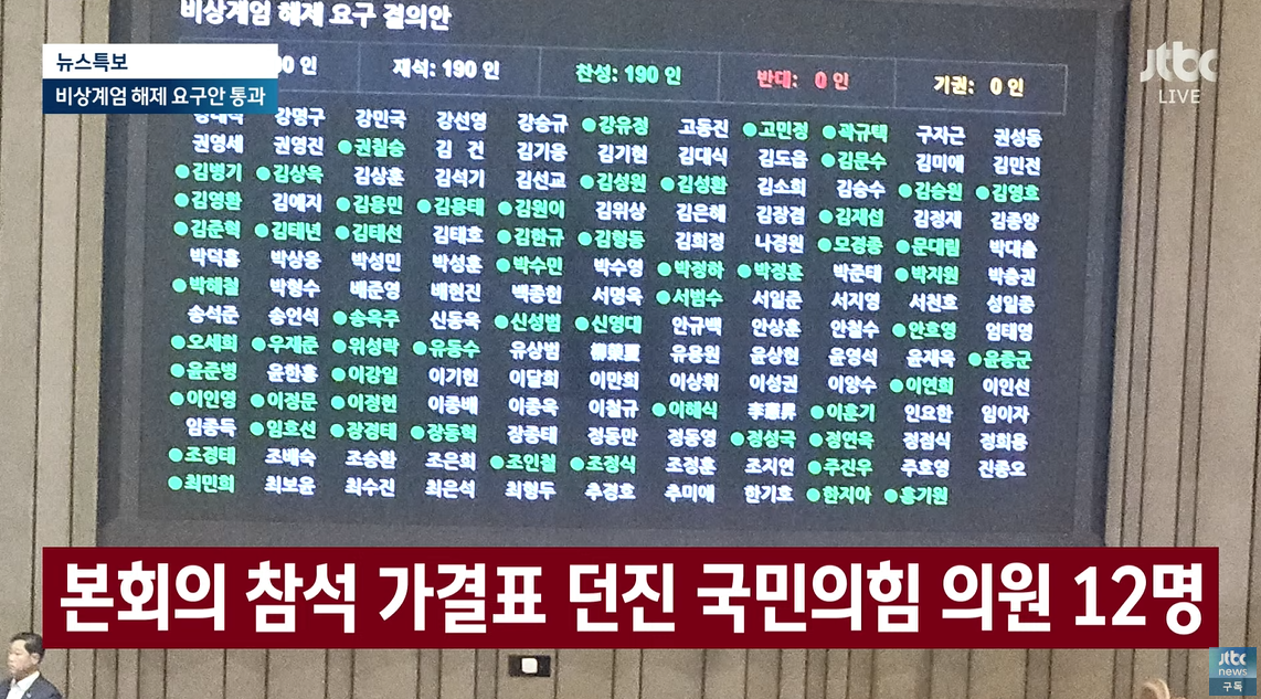 윤석열 비상계엄선포에 반대한 국민의힘 의원 명단 18명.